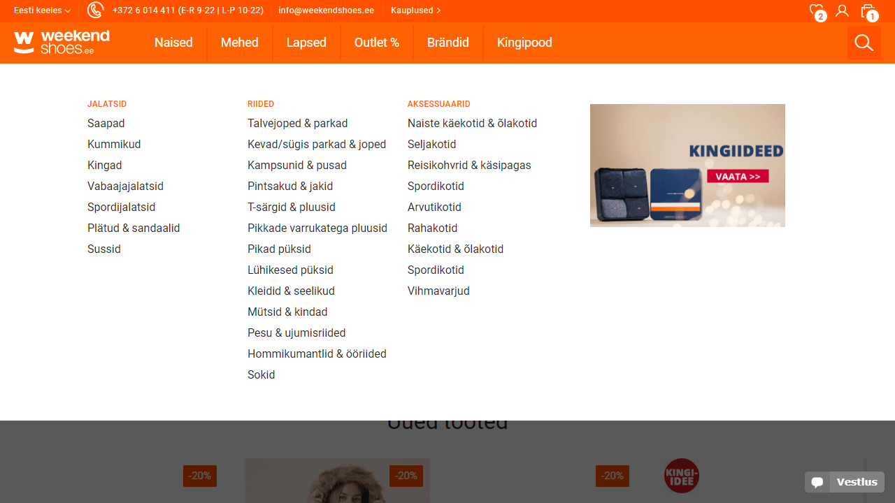 Weekendshoes’ sortiment vokser hele tiden, men hovedproduktgrupperne er fodtøj, tasker og tekstiler. Ud over netbutikken har man også fysiske butikker, som er forbundet med e-handelsløsningen. I alt har de 3 netbutikker i hele Baltikum. Weekendshoes’ formål er at tilbyde hurtig service i god kvalitet.